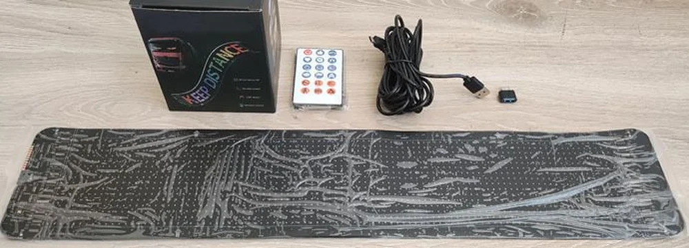 Rozlíšenie FULL COLOR, počet pixelov: 96x16. Na gumovej podložke (hrúbka: 0,6cm) - materiál: koloidná živica. Je ultratenká, ľahká a mäkká. Má flexibilnú konštrukciu obrazovky, dá sa ohýbať podľa ľubovôle, nepoškodí sa. Ohybná - rolovateľná, vodeodolná aj na vonkajšie použitie, vodotesnosť IP64.