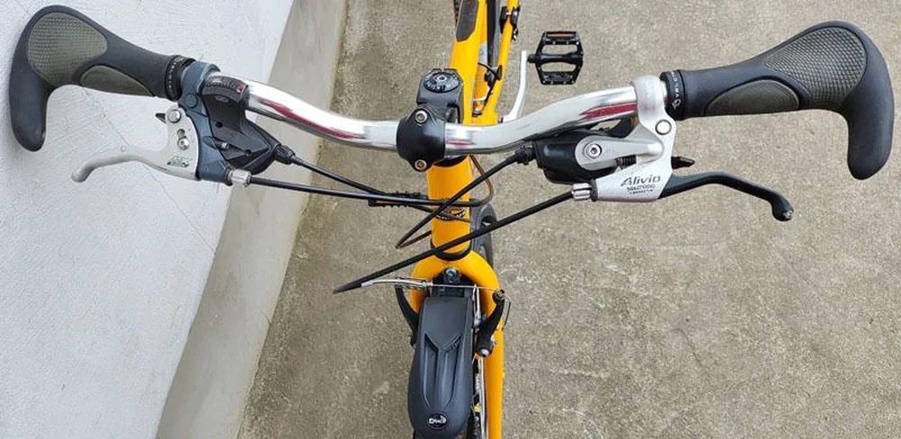 Páčkové radenie prevodov na riadítku spolu s brzdovými páčkami: Shimano DEORE LX + SHIMANO ALIVIO